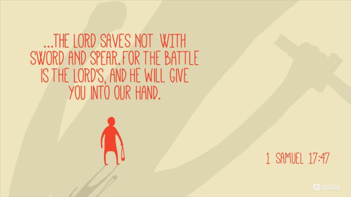 46 This day the Lord will deliver you into my hand, and I will strike you down and cut off your head. mAnd I will give the dead bodies of the host of the Philistines this day nto the birds of the air and to the wild beasts of the earth, othat all the earth may know that there is a God in Israel, 47 and that all this assembly may know that pthe Lord saves not with sword and spear. qFor the battle is the Lord’s, and he will give you into our hand.”