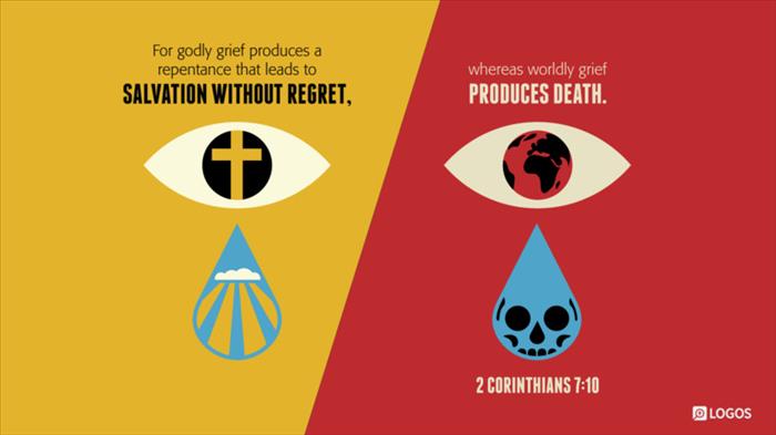 10 For xgodly grief produces a repentance that leads to salvation without regret, whereas yworldly grief produces death. 11 For see what earnestness this godly grief has produced in you, but also what eagerness to clear yourselves, what indignation, what fear, what longing, zwhat zeal, what punishment! At every point you have proved yourselves innocent in the matter. 12 So although I wrote to you, it was not for the sake of the one awho did the wrong, nor for the sake of the one who suffered the wrong, but in order that your earnestness for us might be revealed to you in the sight of God. 13 Therefore bwe are comforted.