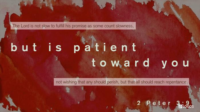9 The Lord is not slow about His promise, as some count slowness, but is patient toward you, not wishing for any to perish but for all to come to repentance.