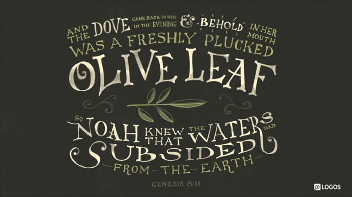 11 and the dove came in to him at eventide; and, lo, in her mouth an olive-leaf plucked off: so Noah knew that the waters were abated from off the earth.