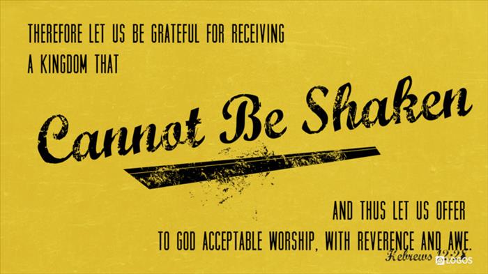 28 Therefore, since we are receiving a kingdom that cannot be shaken, let us be thankful, and so worship God acceptably with reverence and awe,
