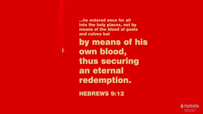 11 But Christ being come an high priest of good things to come, by a greater and more perfect tabernacle, not made with hands, that is to say, not of this building; 12 Neither by the blood of goats and calves, but by his own blood he entered in once into the holy place, having obtained eternal redemption for us. 13 For if the blood of bulls and of goats, and the ashes of an heifer sprinkling the unclean, sanctifieth to the purifying of the flesh: 14 How much more shall the blood of Christ, who through the eternal Spirit offered himself without spot to God, purge your conscience from dead works to serve the living God?
