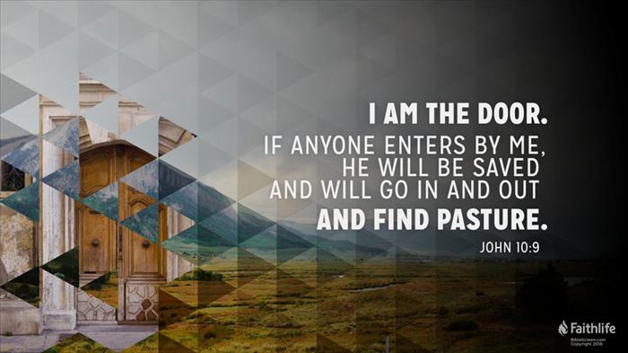 9 I am the door: by me if any man enter in, he shall be saved, and shall go in and out, and find pasture.