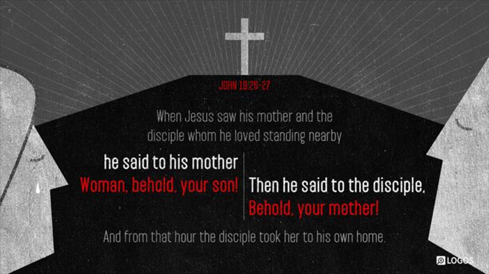 26 So Jesus, seeing his mother and the disciple whom he loved standing there, said to his mother, “Woman, behold your son!” 27 Then he said to the disciple, “Behold your mother!” And from that hour the disciple took her into his own home.