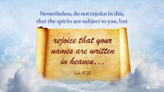 20 Nevertheless in this rejoice not, that the spirits are subject unto you; but rejoice that your names are written in heaven.