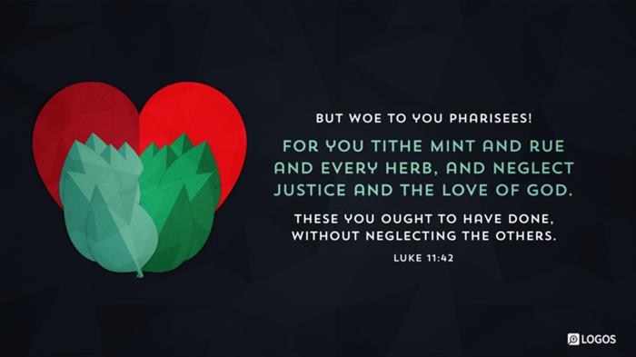 42 “But woe to you Pharisees! For you pay tithe of mint and rue and every kind of garden herb, and yet disregard justice and the love of God; but these are the things you should have done without neglecting the others.