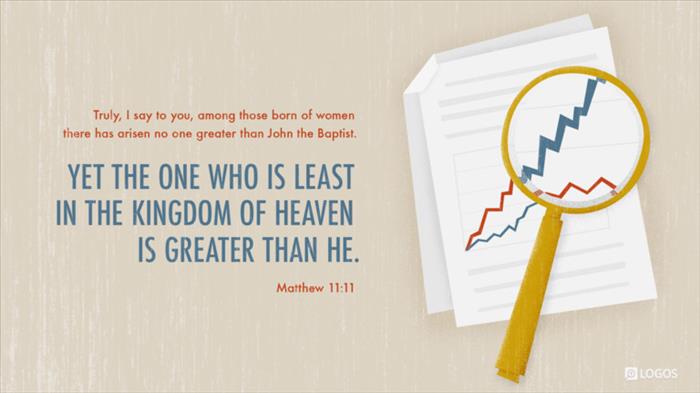 11 Truly I say to you, among those born of women there has not arisen one greater than John the Baptist. But the one who is least in the kingdom of heaven is greater than he. 12 But from the days of John the Baptist until now, the kingdom of heaven is treated violently, and the violent claim it. 13 For all the prophets and the law prophesied until John, 14 and if you are willing to accept it, he is Elijah, the one who is going to come.