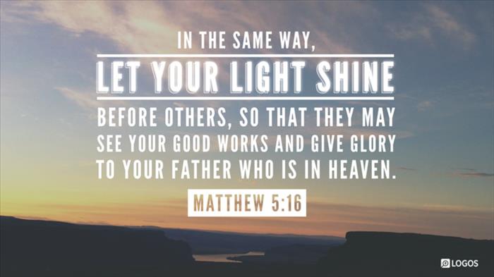 16 “Let your light shine before men in such a way that they may see your good works, and glorify your Father who is in heaven.