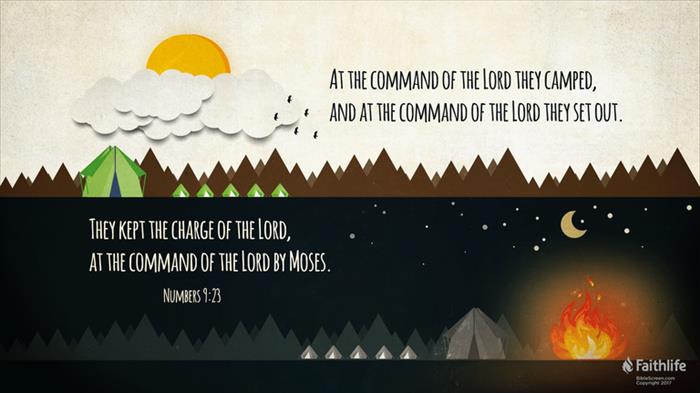 15 rOn the day that the tabernacle was set up, the cloud covered the tabernacle, the tent of the testimony. And sat evening it was over the tabernacle like the appearance of fire until morning. 16 So it was always: the cloud covered it by day1 and the appearance of fire by night. 17 And whenever the cloud tlifted from over the tent, after that the people of Israel set out, and in the place where the cloud settled down, there the people of Israel camped. 18 At the command of the Lord the people of Israel set out, and at the command of the Lord they camped. uAs long as the cloud rested over the tabernacle, they remained in camp. 19 Even when the cloud continued over the tabernacle many days, the people of Israel vkept the charge of the Lord and did not set out. 20 Sometimes the cloud was a few days over the tabernacle, and according to the command of the Lord they remained in camp; then according to the command of the Lord they set out. 21 And sometimes the cloud remained from evening until morning. And when the cloud lifted in the morning, they set out, or if it continued for a day and a night, when the cloud lifted they set out. 22 Whether it was two days, or a month, or a longer time, that the cloud continued over the tabernacle, abiding there, the people of Israel wremained in camp and did not set out, but when it lifted they set out. 23 At the command of the Lord they camped, and at the command of the Lord they set out. vThey kept the charge of the Lord, at the command of the Lord by Moses.