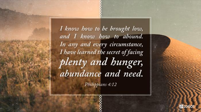 12 I know how to be abased, and I know also how to abound: in everything and in all things have I learned the secret both to be filled and to be hungry, both to abound and to be in want.