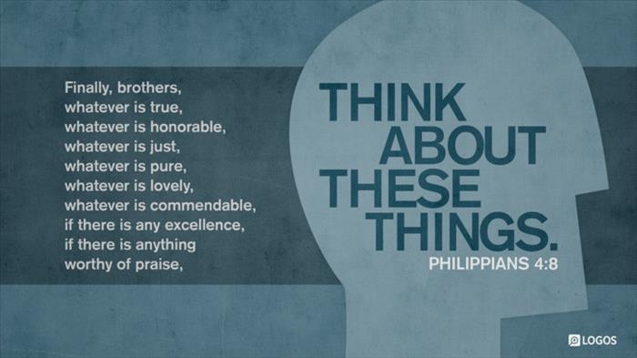 8 Finally, brethren, whatever things are true, whatever things are noble, whatever things are just, whatever things are pure, whatever things are lovely, whatever things are of good report, if there is any virtue and if there is anything praiseworthy—meditate on these things.