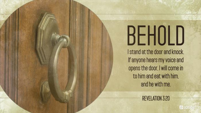 20 ‘Behold, I stand at the door and knock; if anyone hears My voice and opens the door, I will come in to him and will dine with him, and he with Me.