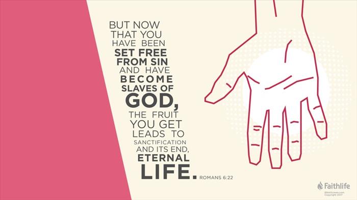 22 But now that you have been freed from sin and enslaved to God, the fruit you have leads to sanctification, and the end is eternal life.