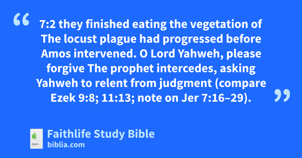 O Lord Yahweh, please forgive The prophet intercedes, asking Yahweh to relent from judgment (compare Ezek 9:8; 11:13; note on Jer 7:16–29).