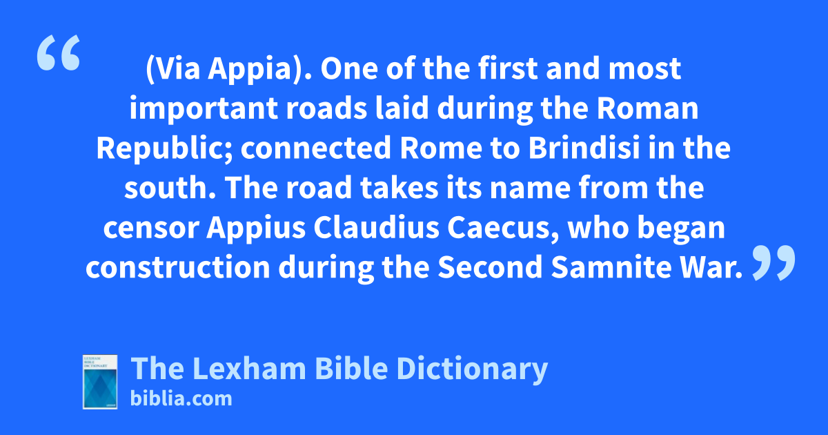 Appian Way (Via Appia). One of the first and most important roads laid during the Roman Republic; connected Rome to Brindisi in the south. The road takes its name from the censor Appius Claudius Caecus, who began construction during the Second Samnite War.