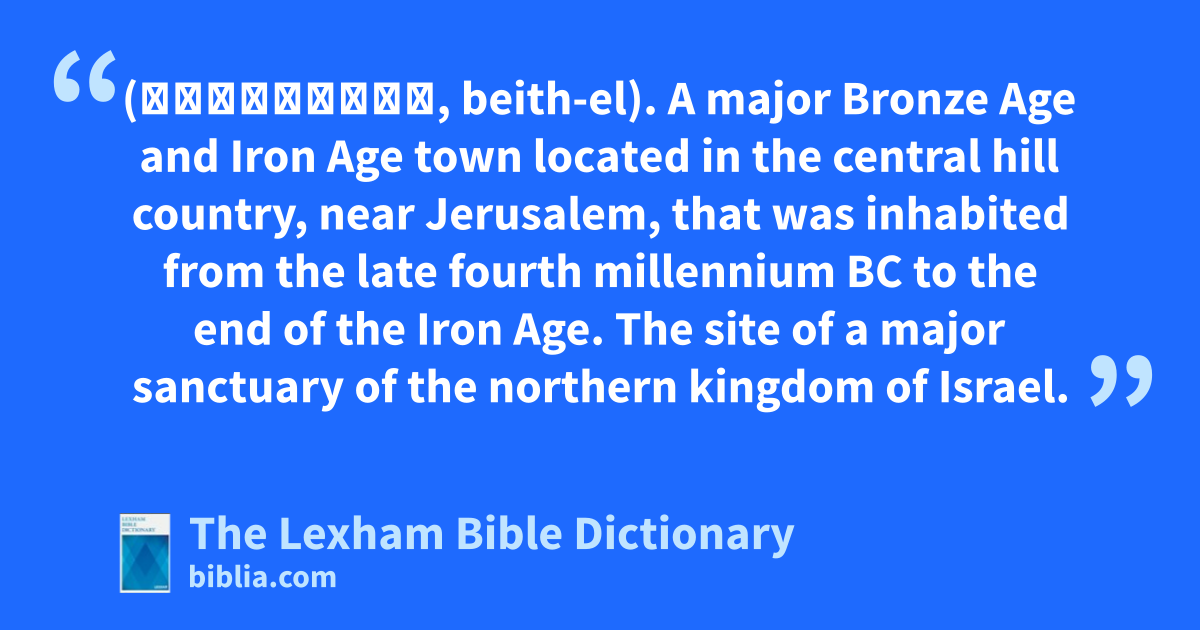 Bethel North of Jerusalem (בֵּית־אֵל, beith-el). A major Bronze Age and Iron Age town located in the central hill country, near Jerusalem, that was inhabited from the late fourth millennium bc to the end of the Iron Age. The site of a major sanctuary of the northern kingdom of Israel.
