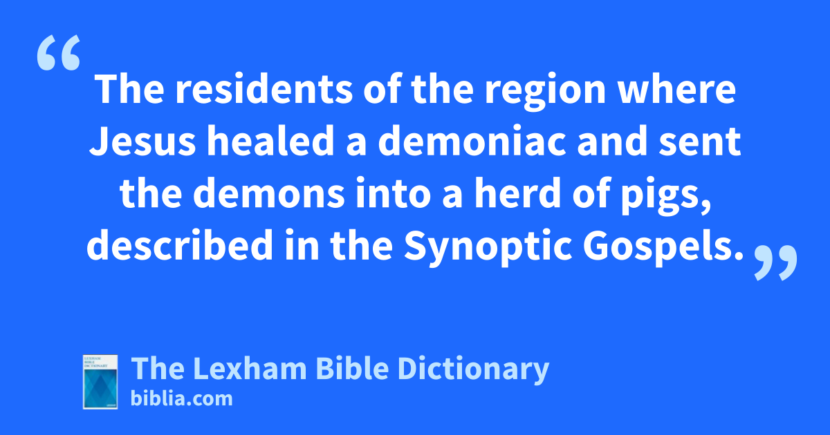 Gerasenes The residents of the region where Jesus healed a demoniac and sent the demons into a herd of pigs, described in the Synoptic Gospels.