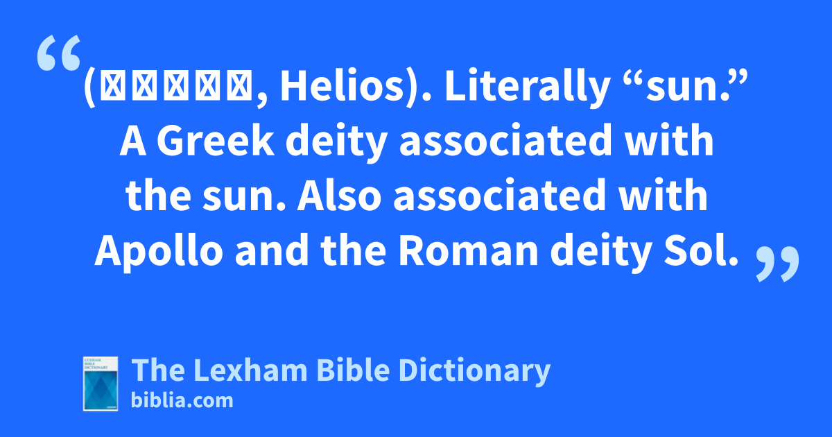 Helios (Ἕλιος, Helios). Literally “sun.” A Greek deity associated with the sun. Also associated with Apollo and the Roman deity Sol.