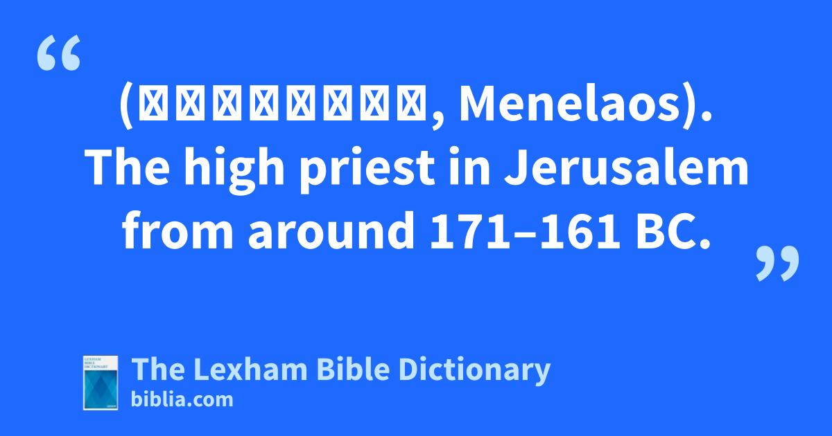 Menelaus (Μενέλαος, Menelaos). The high priest in Jerusalem from around 171–161 bc.