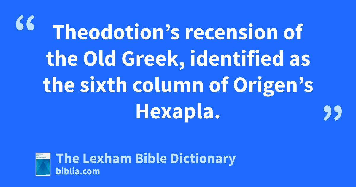 Theodotion’s Version Theodotion’s recension of the Old Greek, identified as the sixth column of Origen’s Hexapla.