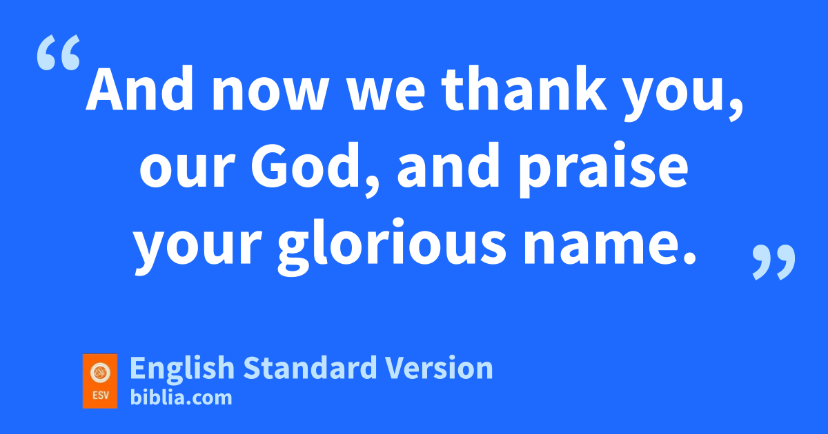 10 Therefore David blessed the Lord in the presence of all the assembly. And David said: z“Blessed are you, O Lord, the God of Israel our father, forever and ever. 11 aYours, O Lord, is the greatness and the power and the glory and the victory and the majesty, for all that is in the heavens and in the earth is yours. Yours is the kingdom, O Lord, and you are exalted as head above all. 12 bBoth riches and honor come from you, and you rule over all. cIn your hand are power and might, and in your hand it is to make great and to give strength to all. 13 And now we thank you, our God, and praise your glorious name.