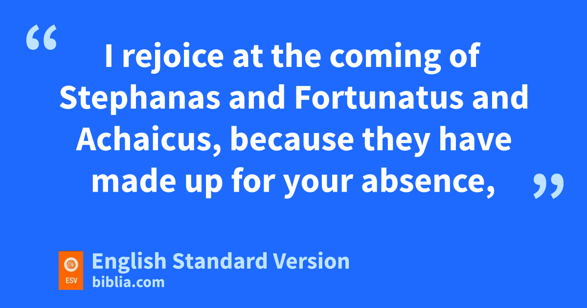 15 Now I urge you, brothers3—you know that ethe household4 of Stephanas were fthe first converts in Achaia, and that they have devoted themselves gto the service of the saints— 16 hbe subject to such as these, and to every fellow worker and laborer. 17 I rejoice at the coming of Stephanas and Fortunatus and Achaicus, because they have made up for iyour absence, 18 for they jrefreshed my spirit as well as yours. kGive recognition to such people.