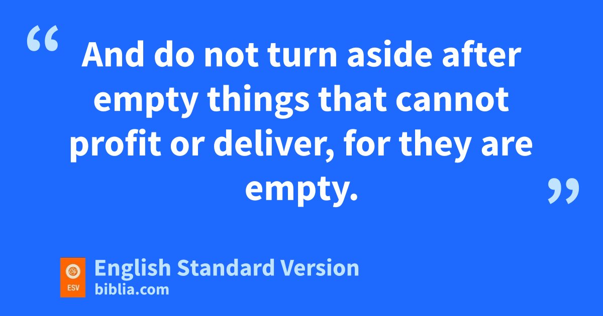 19 And all the people said to Samuel, y“Pray for your servants to the Lord your God, that we may not die, for we have added to all our sins this evil, to ask for ourselves a king.” 20 And Samuel said to the people, “Do not be afraid; you have done all this evil. Yet zdo not turn aside from following the Lord, but serve the Lord with all your heart. 21 And zdo not turn aside after aempty things that cannot profit or deliver, for they are empty. 22 bFor the Lord will not forsake his people, cfor his great name’s sake, because dit has pleased the Lord to make you a people for himself. 23 Moreover, as for me, far be it from me that I should sin against the Lord by ceasing eto pray for you, fand I will instruct you in the good and the right way. 24 gOnly fear the Lord and serve him faithfully with all your heart. For consider hwhat great things he has done for you. 25 But if you still do wickedly, iyou shall be swept away, jboth you and your king.”