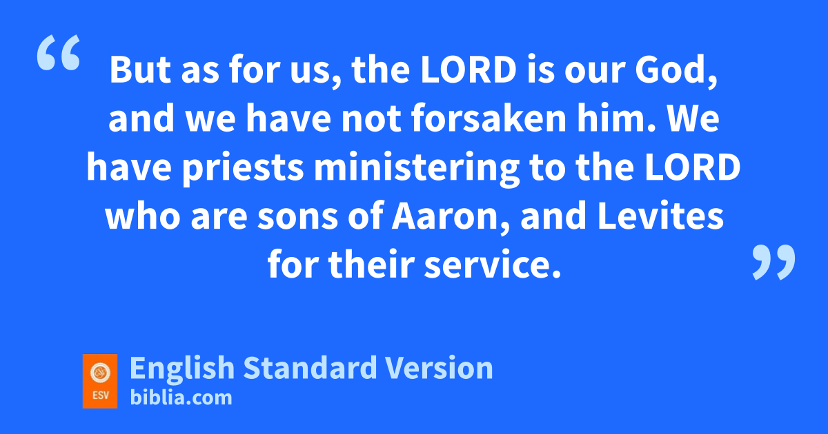 8 “And now you think to withstand the kingdom of the Lord in the hand of the sons of David, because you are a great multitude and have with you kthe golden calves that Jeroboam made you for gods. 9 lHave you not driven out the priests of the Lord, the sons of Aaron, and the Levites, and made priests for yourselves like the peoples of other lands? Whoever comes mfor ordination4 with a young bull or seven rams becomes a priest of what are nnot gods. 10 But as for us, the Lord is our God, and we have not forsaken him. We have priests ministering to the Lord who are sons of Aaron, and Levites for their service. 11 They offer to the Lord oevery morning and every evening burnt offerings and incense of sweet spices, set out pthe showbread on the table of pure gold, qand care for the golden lampstand that its lamps may rburn every evening. For we skeep the charge of the Lord our God, but you have forsaken him. 12 Behold, God is with us at our head, and his priests twith their battle trumpets to sound the call to battle against you. O sons of Israel, udo not fight against the Lord, the God of your fathers, for you cannot succeed.”