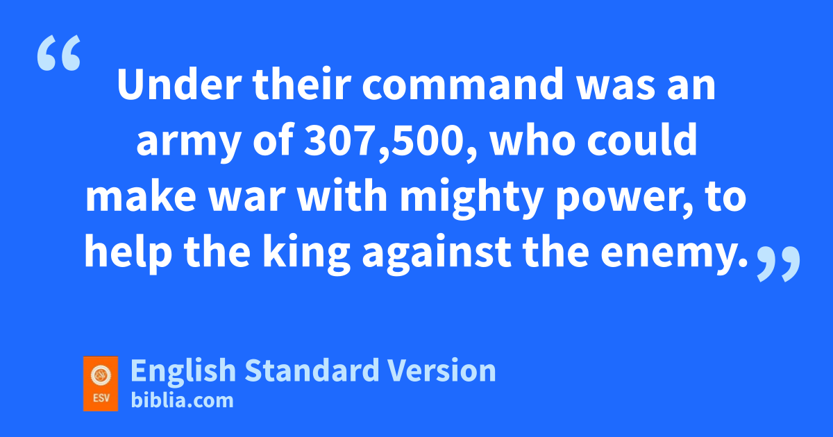 6 He went out and hmade war against the Philistines and broke through the wall of Gath and the wall of Jabneh and the wall of Ashdod, and he built cities in the territory of Ashdod and elsewhere among the Philistines. 7 God helped him iagainst the Philistines and against the Arabians who lived in Gurbaal and against the jMeunites. 8 The Ammonites kpaid tribute to Uzziah, and his fame spread even to the border of Egypt, for he became very strong. 9 Moreover, Uzziah built towers in Jerusalem at lthe Corner Gate and at mthe Valley Gate and at nthe Angle, and fortified them. 10 And he built towers in the wilderness and ocut out many cisterns, for he had large herds, both in the Shephelah and in the plain, and he had farmers and vinedressers in the hills and in the fertile lands, for he loved the soil. 11 Moreover, Uzziah had an army of soldiers, fit for war, in divisions according to the numbers in the muster made by Jeiel the secretary and Maaseiah the officer, under the direction of Hananiah, one of the king’s commanders. 12 The whole number of the heads of fathers’ houses of mighty men of valor was 2,600. 13 Under their command was an army of p307,500, who could make war with mighty power, to help the king against the enemy. 14 And Uzziah prepared for all the army shields, spears, helmets, qcoats of mail, bows, and stones for slinging. 15 In Jerusalem he made machines, invented by skillful men, to be on the towers and the corners, to shoot arrows and great stones. And his fame spread far, for he was marvelously helped, till he was strong.