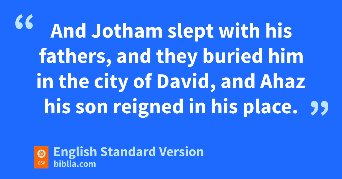 27 aJotham was twenty-five years old when he began to reign, and he reigned sixteen years in Jerusalem. His mother’s name was Jerushah the daughter of Zadok. 2 And he did what was right in the eyes of the Lord according to all that his father Uzziah had done, bexcept he did not enter the temple of the Lord. But the people still followed corrupt practices. 3 He built the upper gate of the house of the Lord and did much building on the wall of cOphel. 4 Moreover, he built cities in the hill country of Judah, and forts and towers on the wooded hills. 5 He fought with the king of the Ammonites and prevailed against them. And the Ammonites gave him that year 100 talents1 of silver, and 10,000 cors2 of wheat and 10,000 of barley. The Ammonites paid him the same amount in the second and the third years. 6 So Jotham became mighty, because he ordered his ways before the Lord his God. 7 dNow the rest of the acts of Jotham, and all his wars and his ways, behold, they are written in the Book of the Kings of Israel and Judah. 8 He was etwenty-five years old when he began to reign, and he reigned sixteen years in Jerusalem. 9 And Jotham slept with his fathers, and they buried him in the city of David, and Ahaz his son reigned in his place.