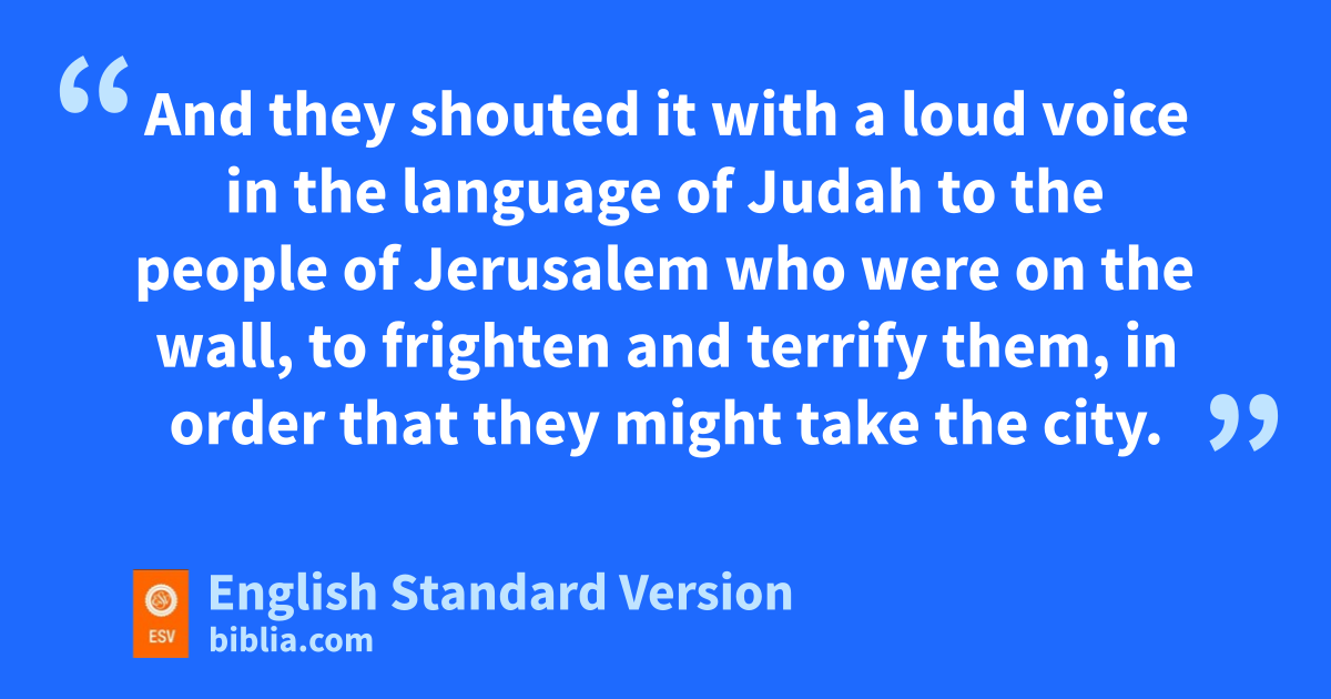16 And his servants said still more against the Lord God and against his servant Hezekiah. 17 And he wrote letters to cast contempt on the Lord, the God of Israel, and to speak against him, saying, “Like the gods of the nations of the lands who have not delivered their people from my hands, so the God of Hezekiah will not deliver his people from my hand.” 18 And they shouted it with a loud voice in the language of Judah to the people of Jerusalem who were on the wall, to frighten and terrify them, in order that they might take the city. 19 And they spoke of the God of Jerusalem as they spoke of the gods of the peoples of the earth, which are the work of men’s hands.