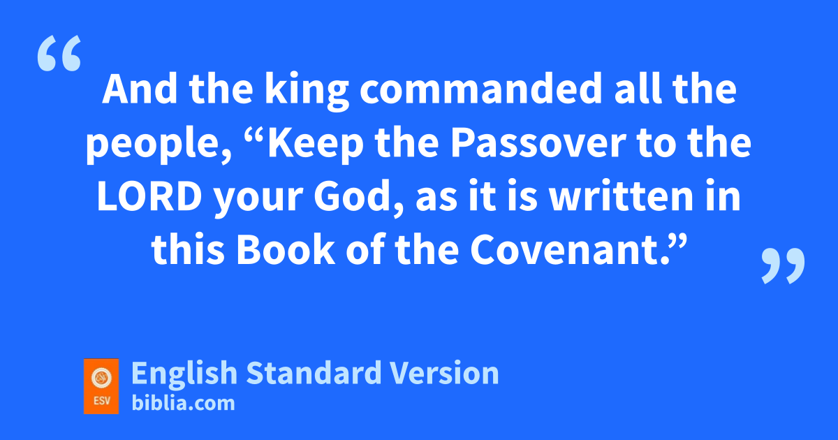 21 And the king commanded all the people, k“Keep the Passover to the Lord your God, las it is written in this Book of the Covenant.” 22 mFor no such Passover had been kept since the days of the judges who judged Israel, or during all the days of the kings of Israel or of the kings of Judah. 23 But in the eighteenth year of King Josiah this Passover was kept to the Lord in Jerusalem.