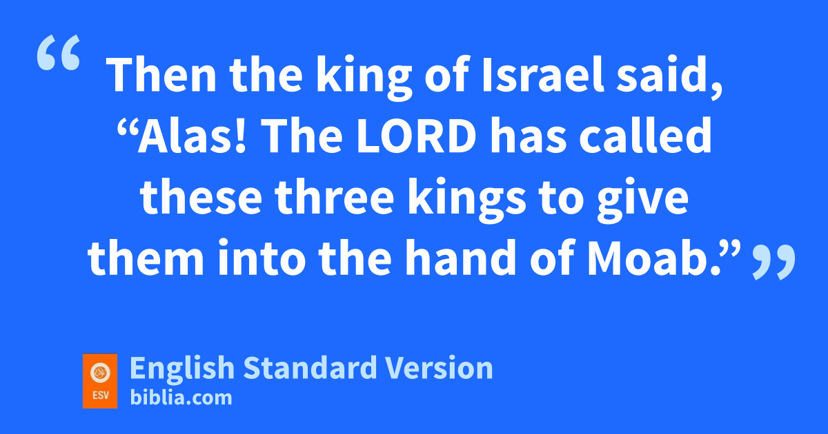 9 So the king of Israel went with the king of Judah and nthe king of Edom. And when they had made a circuitous march of seven days, there was no water for the army or for the animals that followed them. 10 Then the king of Israel said, “Alas! oThe Lord has called these three kings to give them into the hand of Moab.” 11 pAnd Jehoshaphat said, “Is there no prophet of the Lord here, through whom we may inquire of the Lord?” Then one of the king of Israel’s servants answered, q“Elisha the son of Shaphat is here, rwho poured water on the hands of Elijah.” 12 And Jehoshaphat said, “The word of the Lord is with him.” So the king of Israel and Jehoshaphat and the king of Edom went down to him.