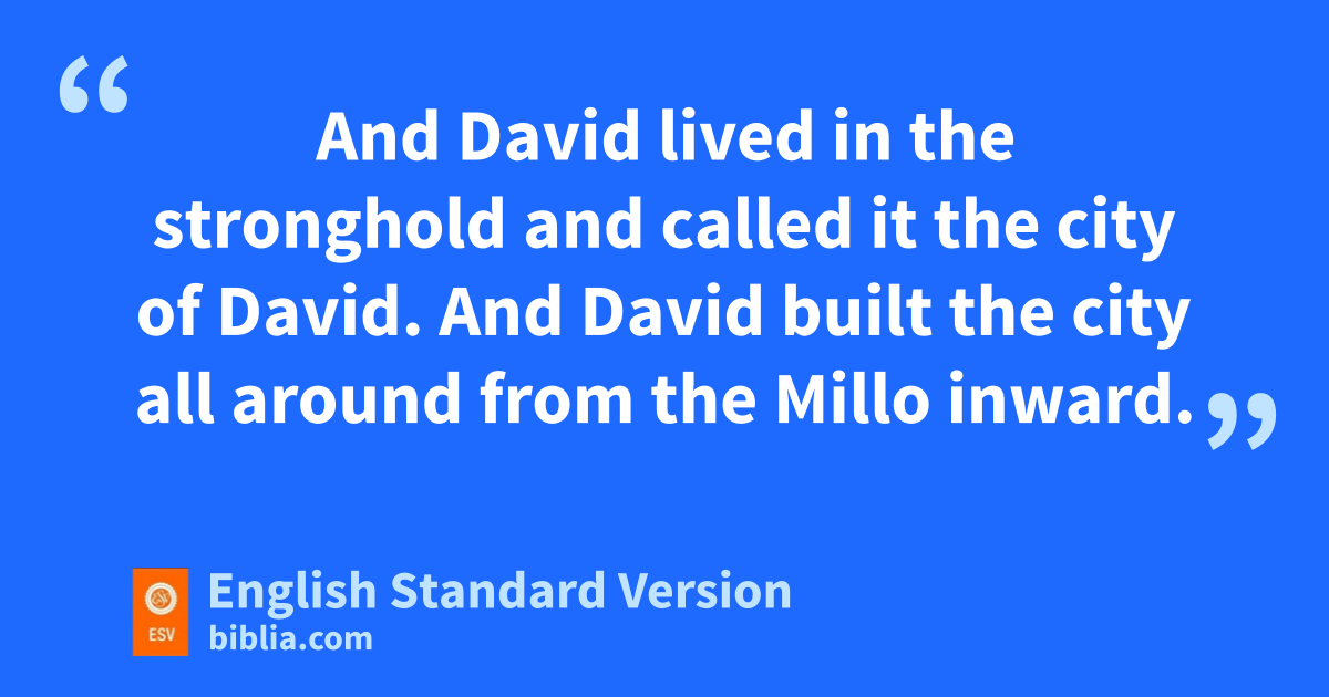6 cAnd the king and his men went to Jerusalem dagainst the Jebusites, the inhabitants of the land, who said to David, “You will not come in here, but the blind and the lame will ward you off”—thinking, “David cannot come in here.” 7 Nevertheless, David took the stronghold of Zion, ethat is, the city of David. 8 And David said on that day, “Whoever would strike the Jebusites, let him get up the water shaft to attack ‘the lame and the blind,’ who are hated by David’s soul.” Therefore it is said, “The blind and the lame shall not come into the house.” 9 And David lived in the stronghold and called it ethe city of David. And David built the city all around from the fMillo inward. 10 And David became greater and greater, for the Lord, the God of hosts, was with him.