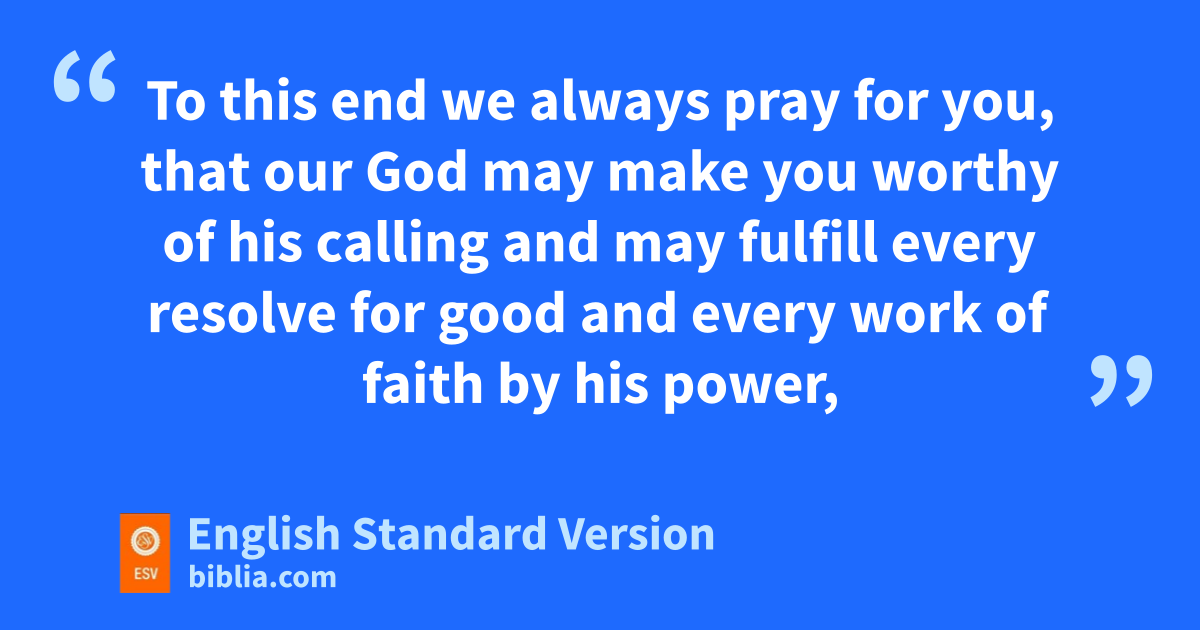 5 This is fevidence of the righteous judgment of God, that you may be gconsidered worthy of the kingdom of God, for which you are also suffering— 6 since indeed God considers it hjust ito repay with affliction those who afflict you, 7 and to grant jrelief to you who are afflicted as well as to us, when kthe Lord Jesus is revealed from heaven lwith his mighty angels 8 min flaming fire, inflicting vengeance on those nwho do not know God and on those who odo not obey the gospel of our Lord Jesus. 9 They will suffer the punishment of peternal destruction, qaway from2 the presence of the Lord and from the glory of his might, 10 rwhen he comes on sthat day tto be glorified in his saints, and to be marveled at among all who have believed, because our utestimony to you vwas believed. 11 To this end we walways pray for you, that our God may xmake you worthy of his calling and may fulfill every resolve for good and every ywork of faith by his power, 12 so that the name of our Lord Jesus zmay be glorified in you, and you in him, according to the grace of our God and the Lord Jesus Christ.