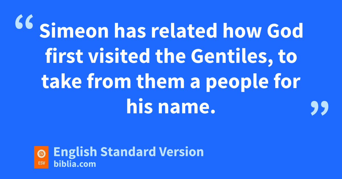 12 And all the assembly fell silent, and they listened to Barnabas and Paul fas they related what signs and wonders God had done through them among the Gentiles. 13 After they finished speaking, gJames replied, “Brothers, listen to me. 14 hSimeon has related how God first visited the Gentiles, to take from them ia people for his name. 15 And with this the words of the prophets agree, just as it is written,