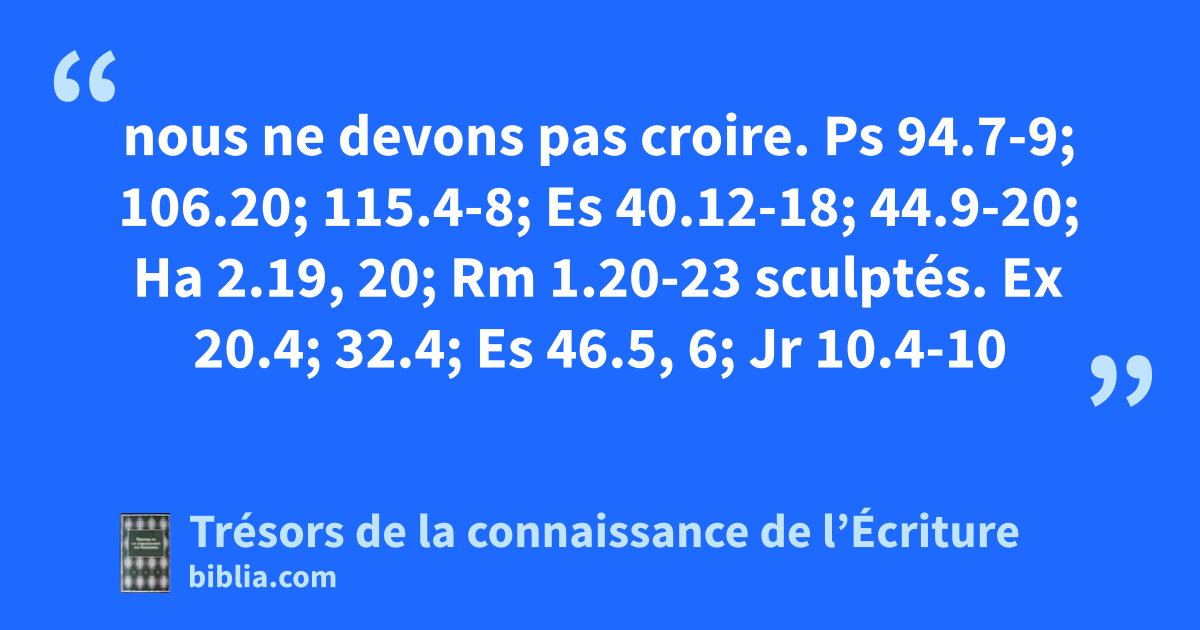 nous ne devons pas croire. Ps 94.7-9; 106.20; 115.4-8; Es 40.12-18; 44.9-20; Ha 2.19, 20; Rm 1.20-23 sculptés. Ex 20.4; 32.4; Es 46.5, 6; Jr 10.4-10