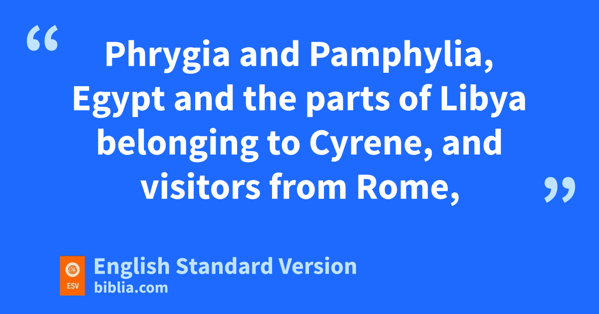 5 Now there were dwelling in Jerusalem Jews, devout men from every nation under heaven. 6 And mat this sound the multitude came together, and they were bewildered, because each one was hearing them speak in his own language. 7 And nthey were amazed and astonished, saying, “Are not all these who are speaking oGalileans? 8 And how is it that we hear, each of us in his own native language? 9 Parthians and pMedes and qElamites and residents of Mesopotamia, Judea and Cappadocia, Pontus and Asia, 10 Phrygia and Pamphylia, Egypt and the parts of Libya belonging to Cyrene, and visitors from Rome, 11 both Jews and rproselytes, Cretans and Arabians—we hear them telling in our own tongues the mighty works of God.” 12 And sall were amazed and perplexed, saying to one another, “What does this mean?” 13 But others tmocking said, “They are filled with new wine.”