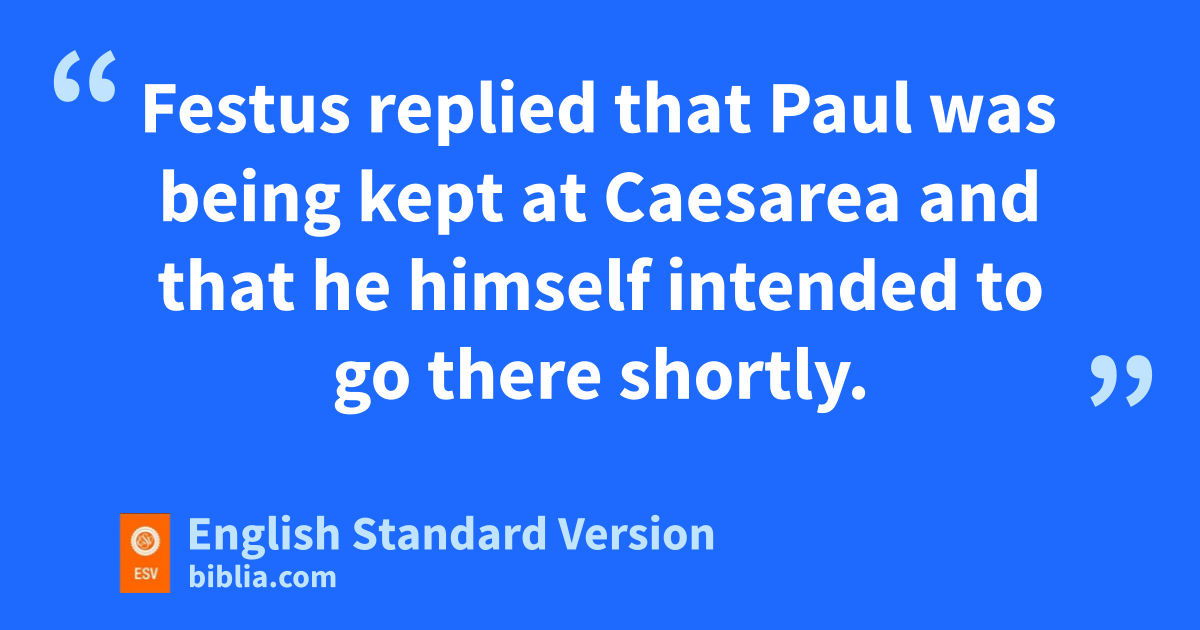 25 Now three days after Festus had arrived in ithe province, he went up to Jerusalem from Caesarea. 2 And the chief priests and the principal men of the Jews jlaid out their case against Paul, and they urged him, 3 asking as a favor against Paul1 that he summon him to Jerusalem—because kthey were planning an ambush to kill him on the way. 4 Festus replied that Paul was being kept at Caesarea and that he himself intended to go there shortly. 5 “So,” said he, “let the men of authority among you go down with me, and if there is anything wrong about the man, let them bring charges against him.”