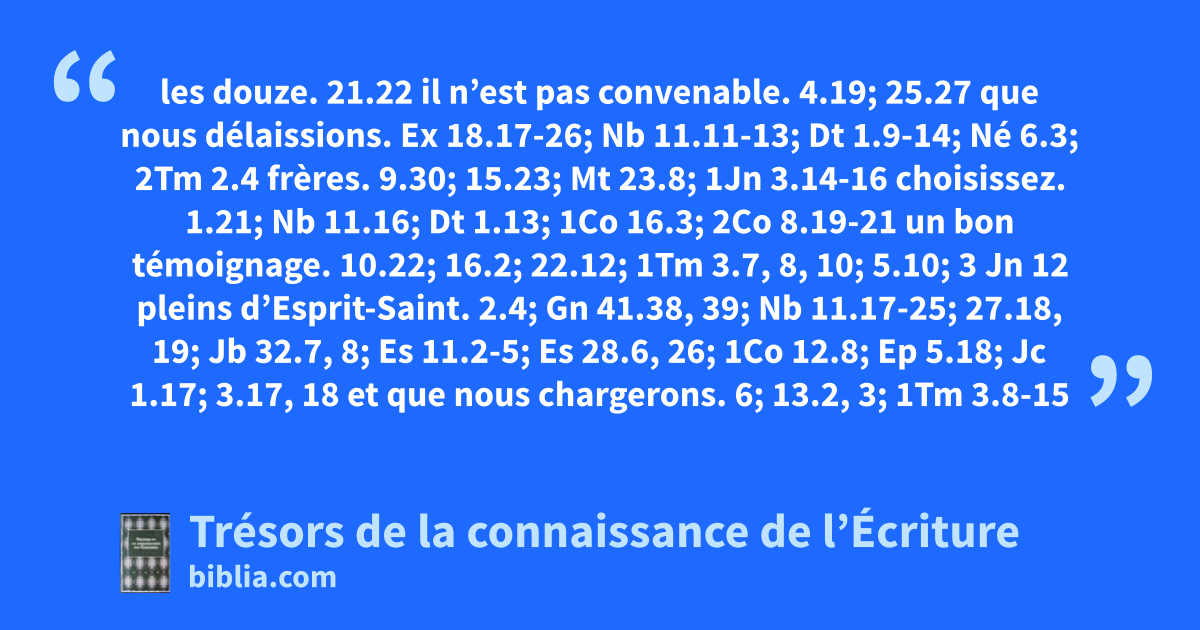les douze. 21.22 il n’est pas convenable. 4.19; 25.27 que nous délaissions. Ex 18.17-26; Nb 11.11-13; Dt 1.9-14; Né 6.3; 2Tm 2.4