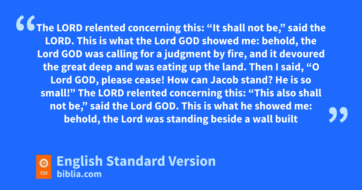 7 aThis is what he showed me: behold, the Lord was standing beside a wall built with fa plumb line, with a plumb line in his hand. 8 And the Lord said to me, g“Amos, what do you see?” And I said, “A plumb line.” Then the Lord said,