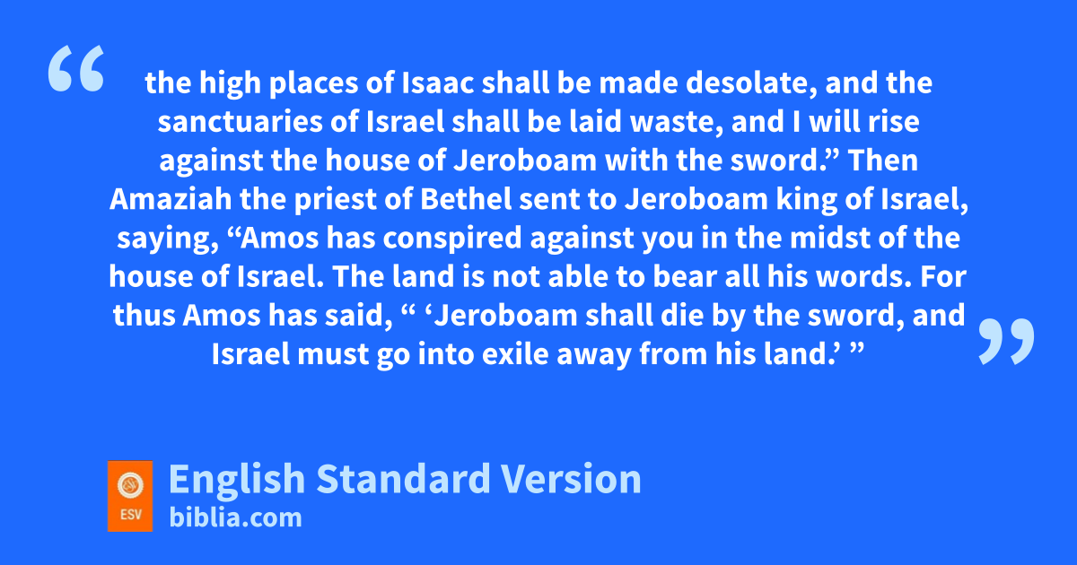 10 Then Amaziah jthe priest of Bethel sent to kJeroboam king of Israel, saying, “Amos has lconspired against you in the midst of the house of Israel. The land is not able to bear all his words. 11 For thus Amos has said,