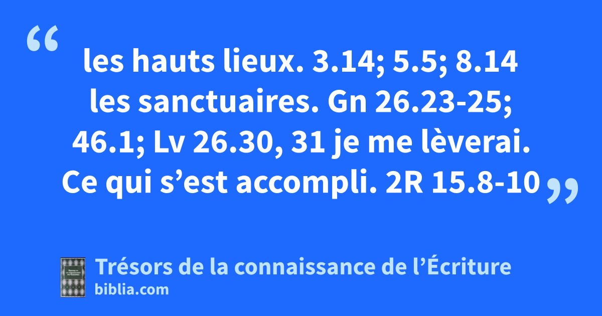 les hauts lieux. 3.14; 5.5; 8.14 les sanctuaires. Gn 26.23-25; 46.1; Lv 26.30, 31 je me lèverai. Ce qui s’est accompli. 2R 15.8-10