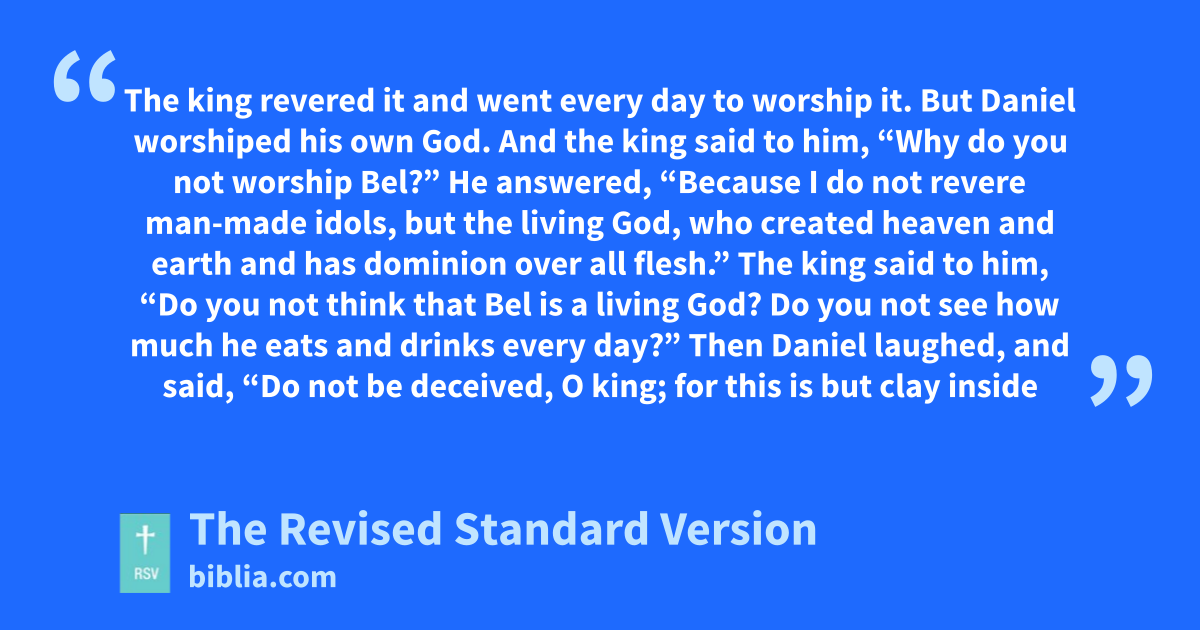 5 And the king said to him, “Why do you not worship Bel?” He answered, “Because I do not revere man-made idols, but the living God, who created heaven and earth and has dominion over all flesh.”