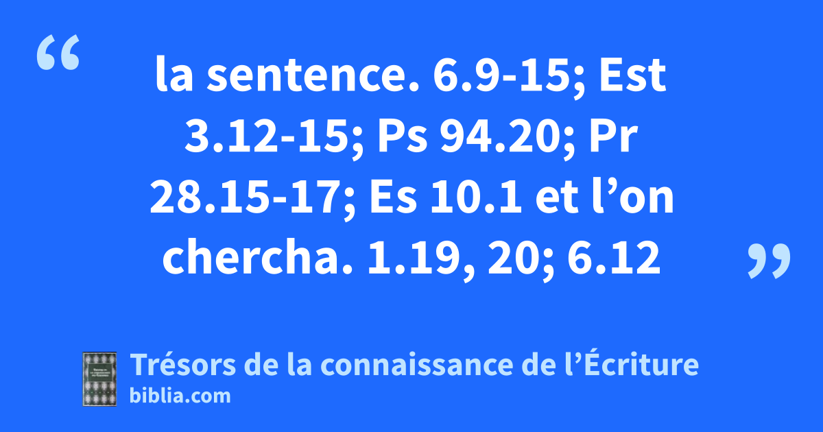 la sentence. 6.9-15; Est 3.12-15; Ps 94.20; Pr 28.15-17; Es 10.1 et l’on chercha. 1.19, 20; 6.12