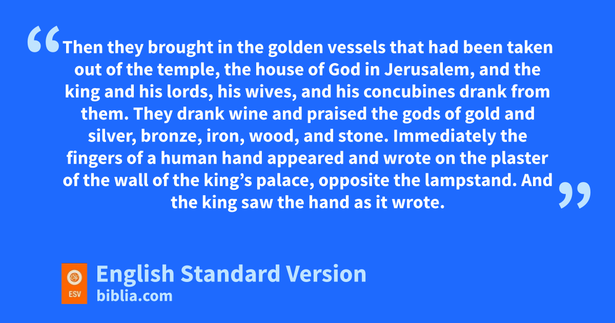 24 “Then from his presence ithe hand was sent, and this writing was inscribed. 25 And this is the writing that was inscribed: Mene, Mene, Tekel, and Parsin. 26 This is the interpretation of the matter: Mene, God has numbered7 the days of your kingdom and brought it to an end; 27 Tekel, jyou have been weighed8 in the balances and found wanting; 28 Peres, your kingdom is divided and given to kthe Medes and lPersians.”9