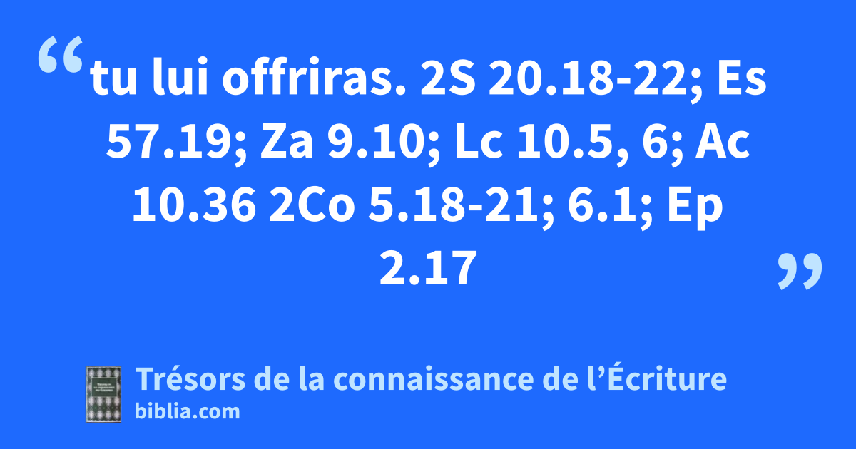 tu lui offriras. 2S 20.18-22; Es 57.19; Za 9.10; Lc 10.5, 6; Ac 10.36 2Co 5.18-21; 6.1; Ep 2.17