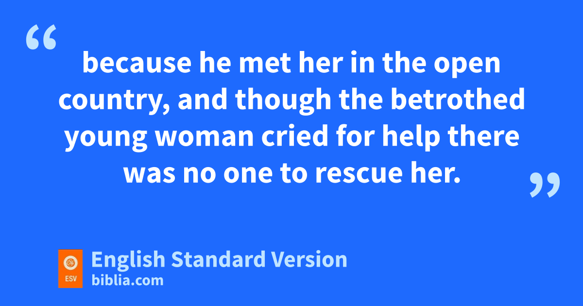 25 “But if in the open country a man meets a young woman who is betrothed, and the man seizes her and lies with her, then only the man who lay with her shall die. 26 But you shall do nothing to the young woman; she has committed no offense punishable by death. For this case is like that of a man attacking and murdering his neighbor, 27 because he met her in the open country, and though the betrothed young woman cried for help there was no one to rescue her.