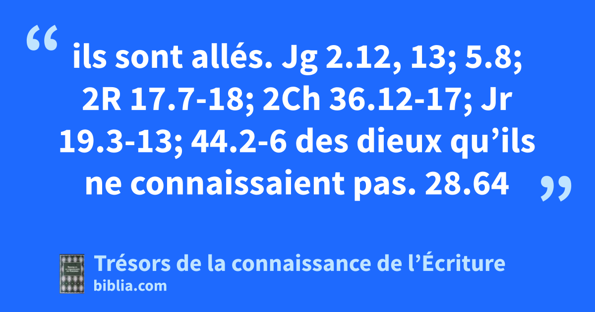 ils sont allés. Jg 2.12, 13; 5.8; 2R 17.7-18; 2Ch 36.12-17; Jr 19.3-13; 44.2-6 des dieux qu’ils ne connaissaient pas. 28.64