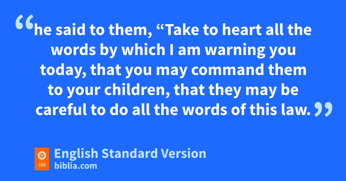 44 Moses came and recited all the words of this song in the hearing of the people, he and qJoshua15 the son of Nun. 45 And when Moses had finished speaking all these words to all Israel, 46 he said to them, r“Take to heart all the words by which I am warning you today, sthat you may command them to your children, that they may be careful to do all the words of this law. 47 For it is no empty word for you, tbut your very life, and by this word you shall live long in the land that you are going over the Jordan to possess.”